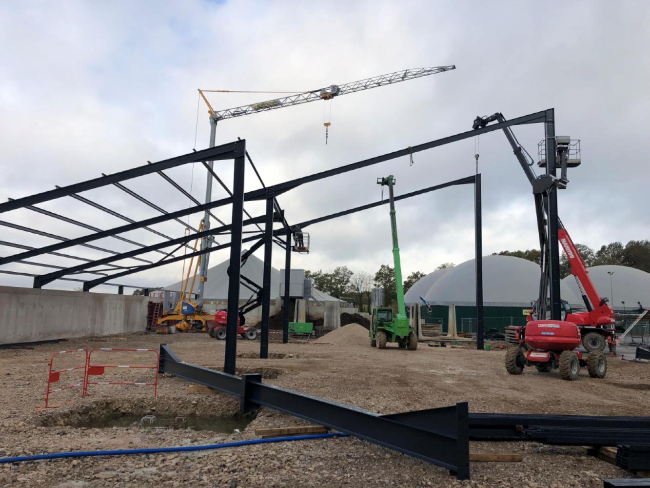 Bâtiment de stockage pour méthanisation de 27m de large par 63m de long.